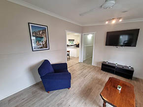 This 3 bedroom cottage has been newly renovated and has 3 double beds, 2 sets of bunks. Lounge, flat screen TV, dining and full cooking facilities. Air-con and bathroom. Linen and towels supplied. 2 night minimum stay.
